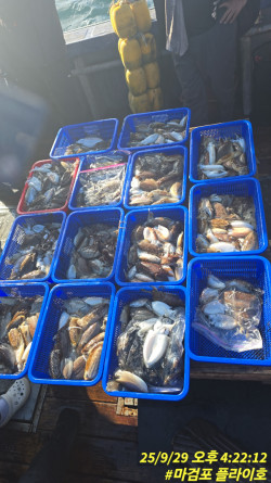 플라이호 선장입니다먼바다 문어 출조 다녀왔습니다어제와는 다르게 반토막 났네요물도 안가고 낚시하시는 선수분도그닥 어제 빼먹어서 그런지 많이문어가 나오질 않앗네요장원13마리 기본1마리~10마리까지총69개로 마감 입항했습니다수고 많으셨습니다==== 플라이호 예약안내 ====예약문의 : 010-9231-5975오시는길 : 충남 태안군 남면 신온리 마검포항홈페이지 : http://choose.sunsang24.com/
