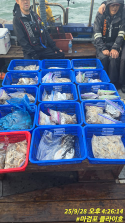 마검포 플라이호 입니다오늘도 갑오징어 출조다녀왔습니다하루종일 따박따박 잘 나와준하루였습니다장원 105마리 98 95 기본 50수~ 70수마무리 입항하였습니다출조하신 조사님 수고 많으셨습니다==== 플라이호 예약안내 ====예약문의 : 010-9231-5975오시는길 : 충남 태안군 남면 신온리 마검포항홈페이지 : http://choose.sunsang24.com/